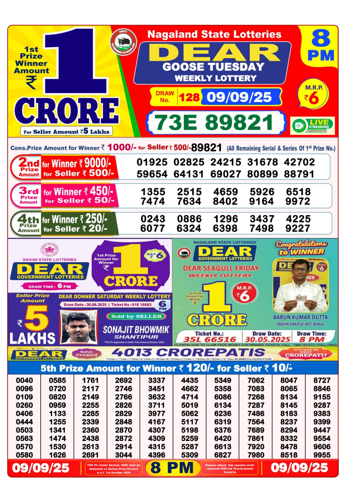 LotterySambad Dear 1PM 6PM 8PM . Check Dear Lotteries Result